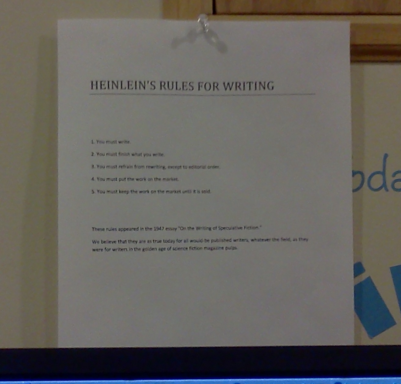 So in the spirit of Heinlein’s 4th rule, I posted the opening of Story Blue this morning. (Heinlein says to put the work on the market. I don’t know if I’m at a point to try to sell anything but I think posting on the blog is consistent with his direction.) Currently titled “The Third String”, it’s just a few hundred words but I think representative of the story. Please read, share, and comment. Thanks!